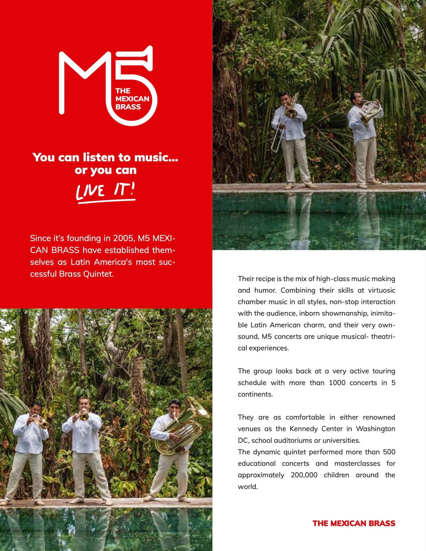 Since it’s founding in 2005, M5 MEXICAN BRASS have established themselves as Latin America's most successful Brass Quintet.